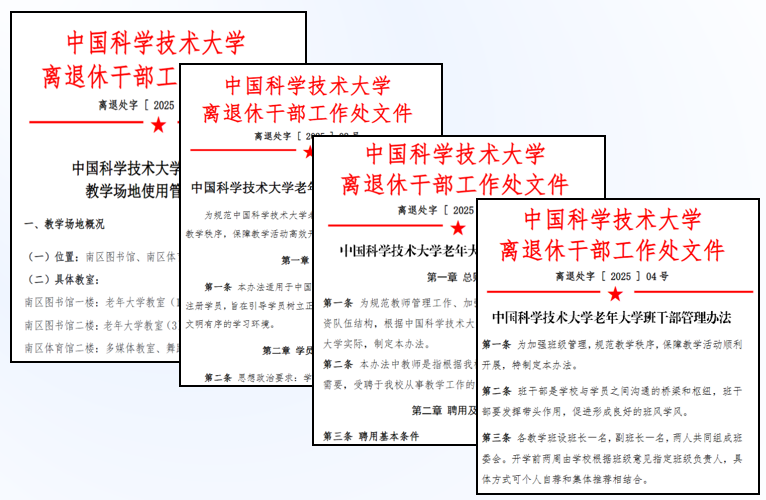 时间向前,步履不停。在这充满变革与奋进的一年里,回望2025年,这是“十四五”规划的收官之年,也是“十五五”规划谋篇布局的重要起步之年。随着国家发展进入新阶段,中国科大离退休工作也在时代的潮流中迈出坚实步伐,积极响应国家战略布局,紧紧把握发展机遇,不断提升服务质量,满足老同志们日益增长的精神文化需求。
