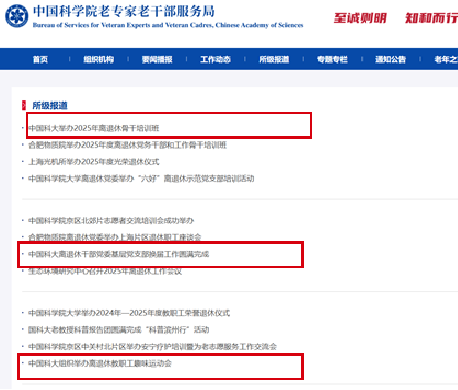 加强与中国科学院离退休干部工作局的